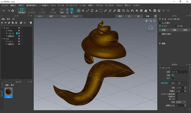 3Dソフトの xismo でもうんち作成専用ノードのヘアーノードで30秒で『うんち』を作れるぞ!